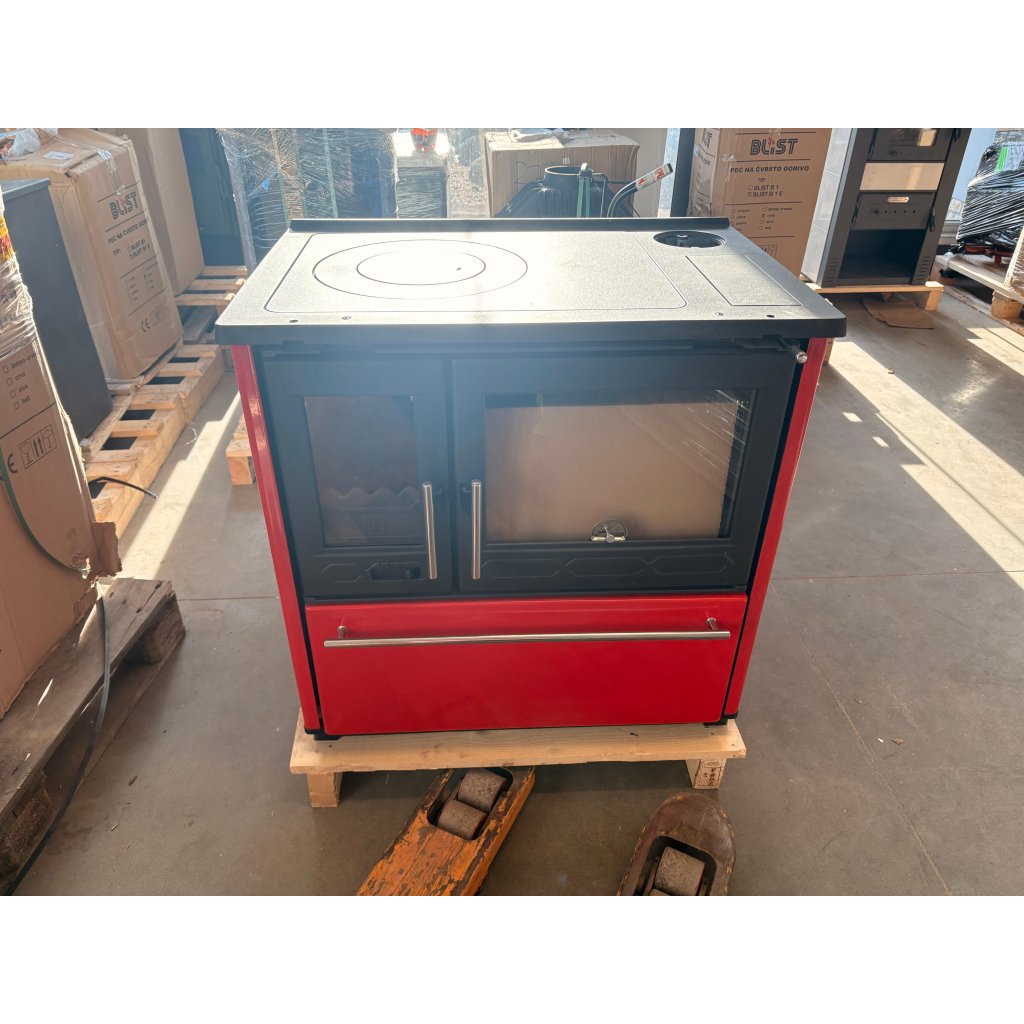 PLAMEN sporák na pevná paliva 850 GLAS pravý - červený (II. jakost) - akce