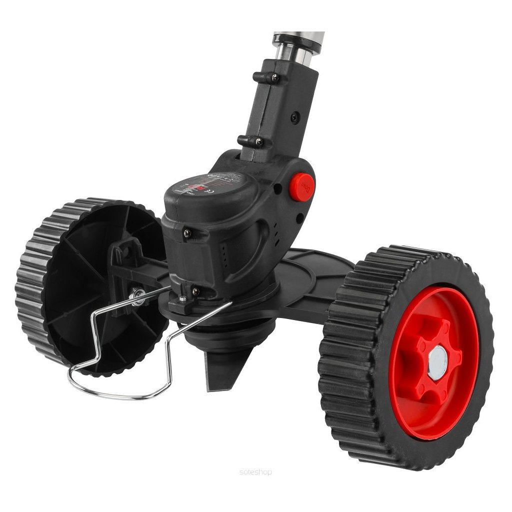 - Náš vyžínač je navíc vybaven vodicími kolečky, takže se snadno manévruje na jakémkoli povrchu, stejně jako standardní sekačka na trávu.