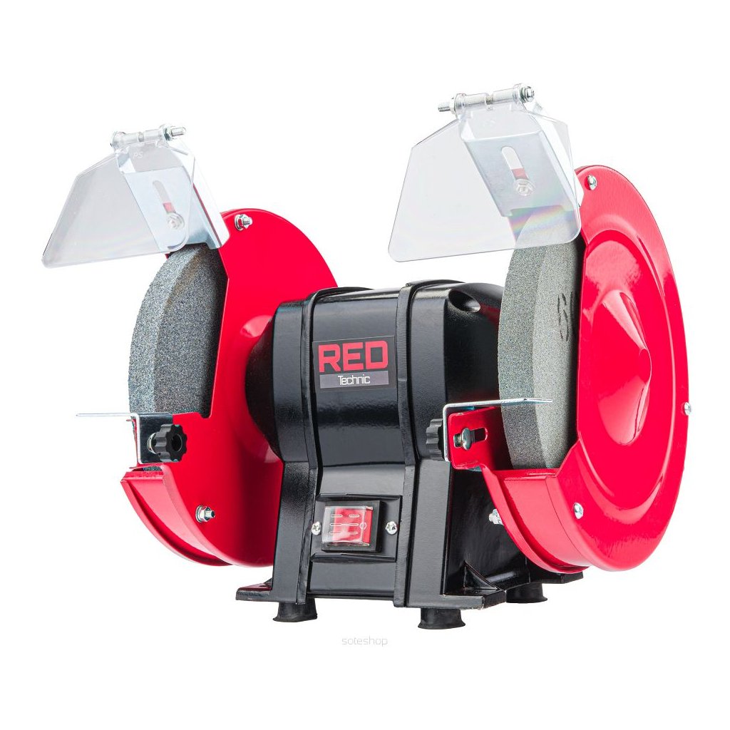 Bruska je vybavena kovovým pouzdrem, nastavitelnými nástavci, kryty ochrany proti jiskrám.