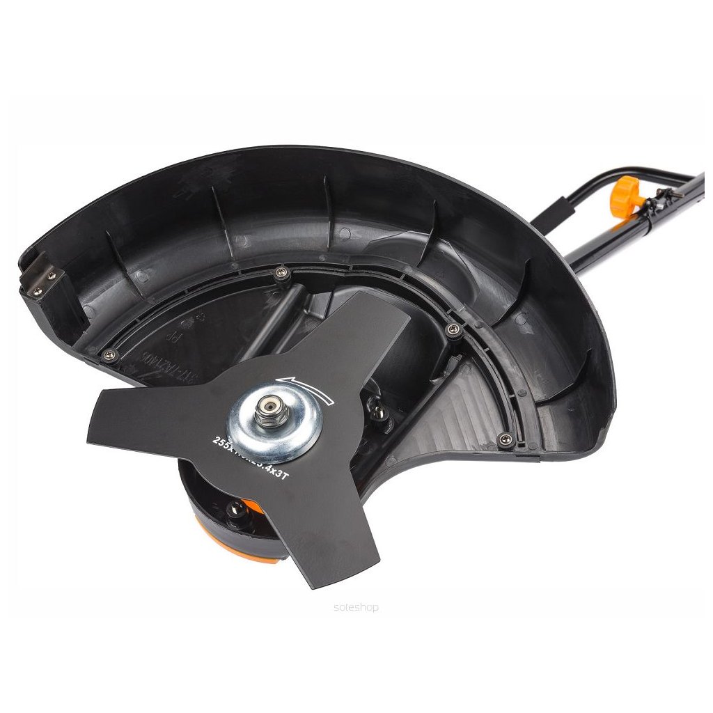 - Powermat se také vyznačuje svou všestranností. Má vyměnitelné hlavy. Lze ji tedy použít jako klasický vyžínač se strunou nebo elektrický vyžínač s kovovou čepelí. Hlava struny se používá pro standardní provoz. Když se objeví větší rostliny, jednoduše použijte přiložený disk s trojzubcem. Elektrický vyžínač s nožem tohoto typu je vhodný pro sekání vysoké trávy, řezání tvrdých výhonků a houštin.
