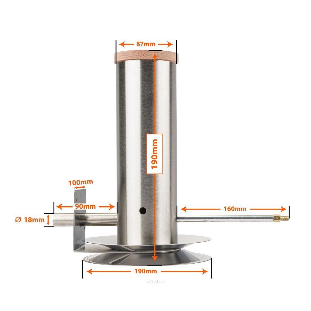 - Trubice má také strukturální funkci - zapadá do příslušného zářezu v základně, což zajišťuje dokonalé umístění trysky vzhledem k udírně a tělu generátoru.