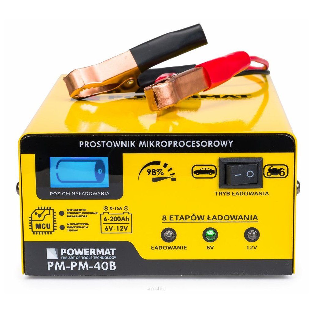 - Nabíječka PM-PM-40B od společnosti Powermat je první nabíječkou baterií na trhu s mikroprocesorovým řídicím systémem v technologii PWM s možností nabíjení 6V a 12V baterií, který inteligentně a cíleně volí správné parametry, díky čemuž se vaše vybitá a zanedbaná baterie regeneruje.