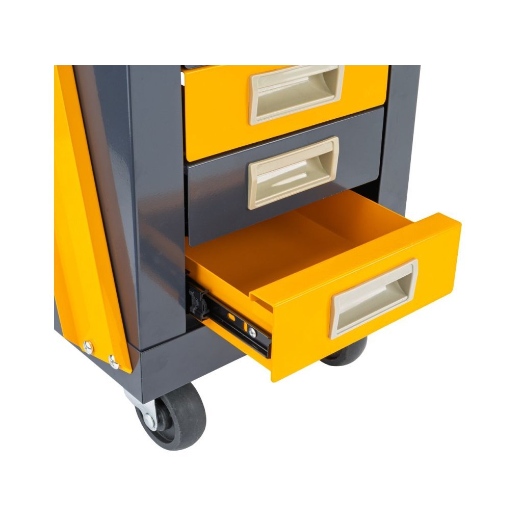- Čtyři zásuvky: Praktické zásuvky umožňují efektivní organizaci nástrojů a příslušenství.