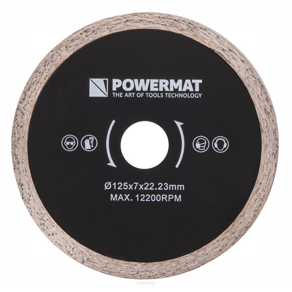 - Zařízení je dodáváno s vysoce kvalitním řezným kotoučem na dlaždice o průměru 125 mm. Kvalita provedení čepele vám umožní provádět mnoho řezů do různých materiálů a připraví zařízení k práci ihned po vybalení z krabice.