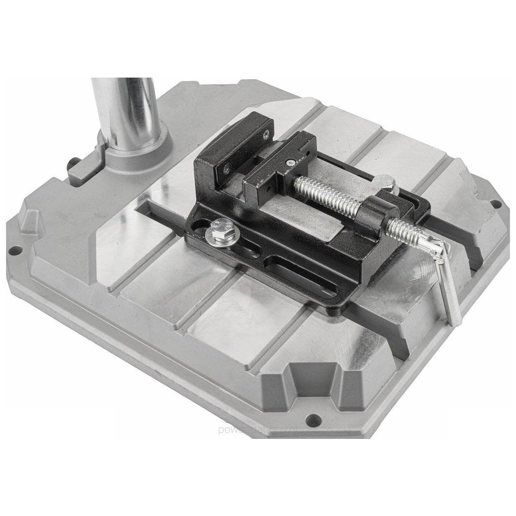 - Vrtačka má stabilní, pevný a nastavitelný pracovní stůl a strojní svěrák.
