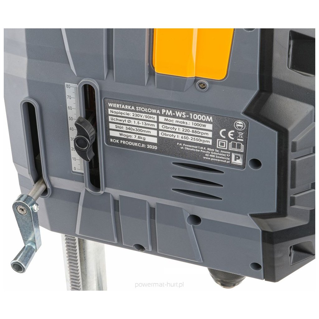 POWERMAT Stolní stojanová vrtačka 1000W svěrák+laser PM-WS-1000M