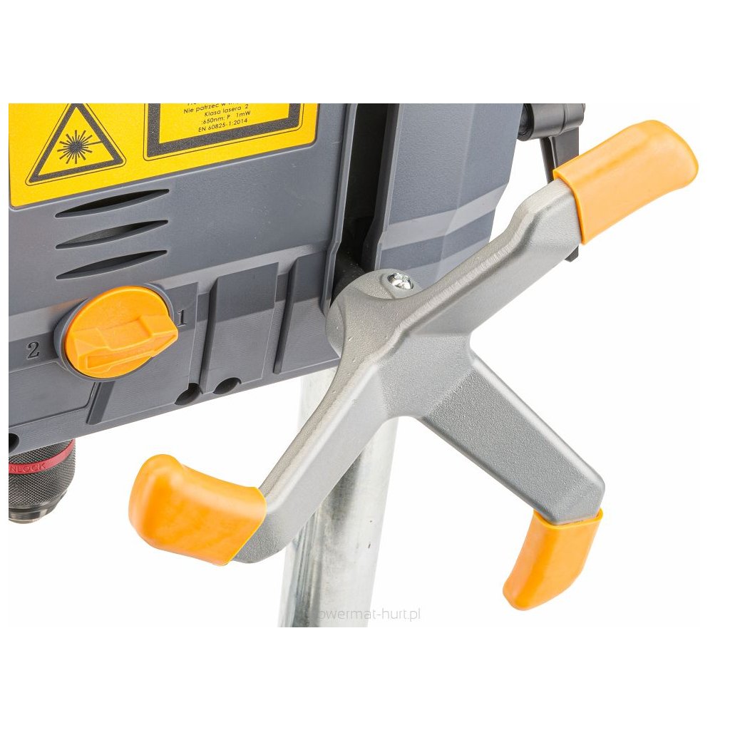 - Zařízení má vestavěný přesný laser napájený ze sítě (bez použití baterií). Použití laseru určitě usnadní přesné vrtání. Křížový laser - dvojitý paprsek.