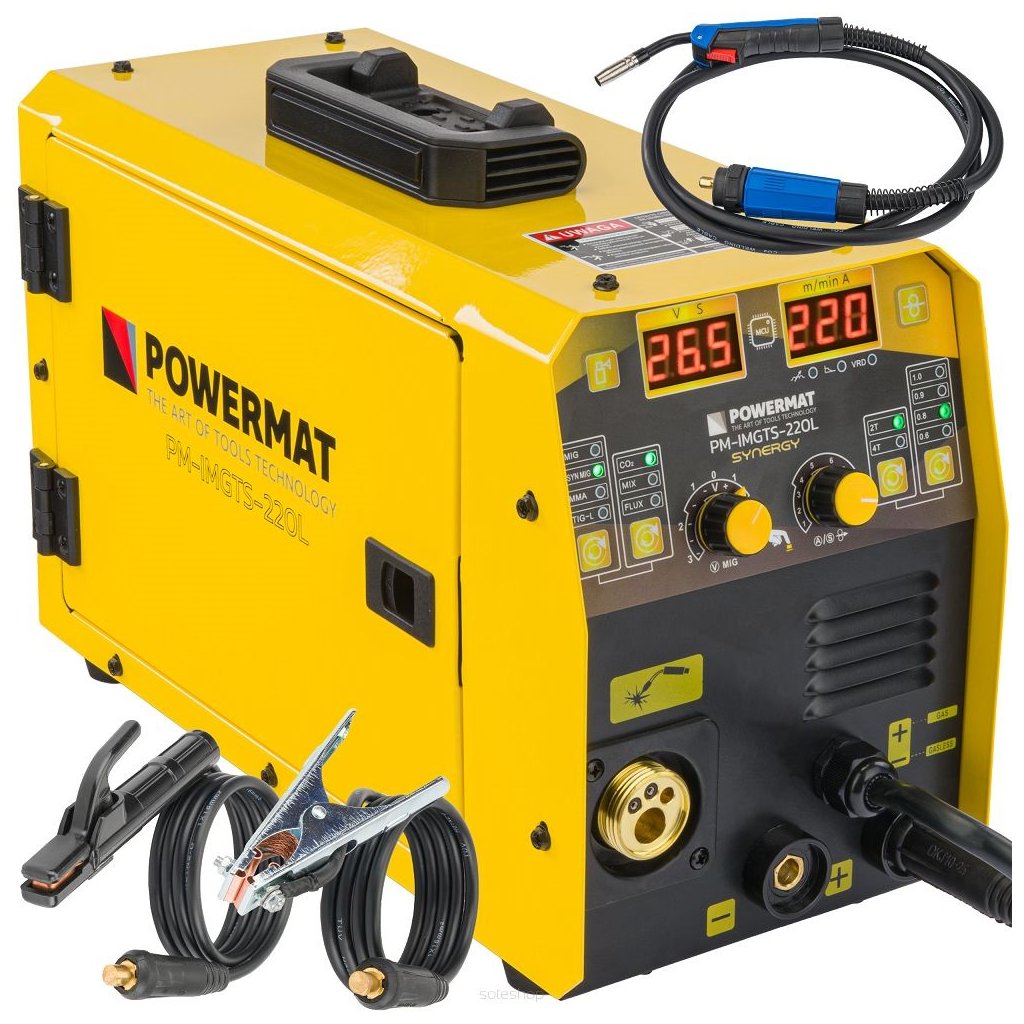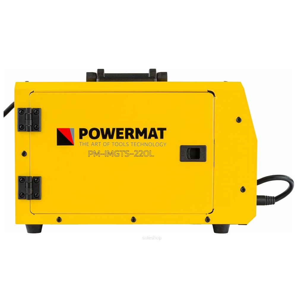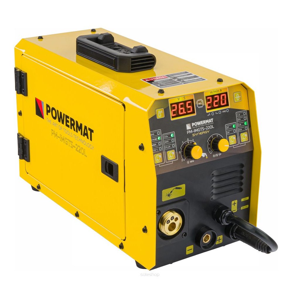 Poloautomatický svařovací stroj POWERMAT PM-IMGTS-220L má velmi široké využití. Umožňuje efektivní svařování různých typů materiálových skupin v širokém rozsahu tlouštěk materiálu. Použité tranzistory IGBT mají příznivý vliv na nižší spotřebu energie, větší odolnost proti rušení a poklesům napětí a dobré charakteristiky oblouku.