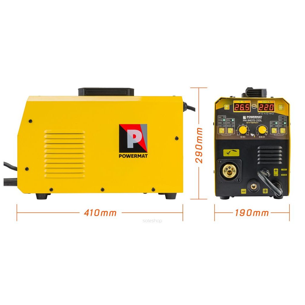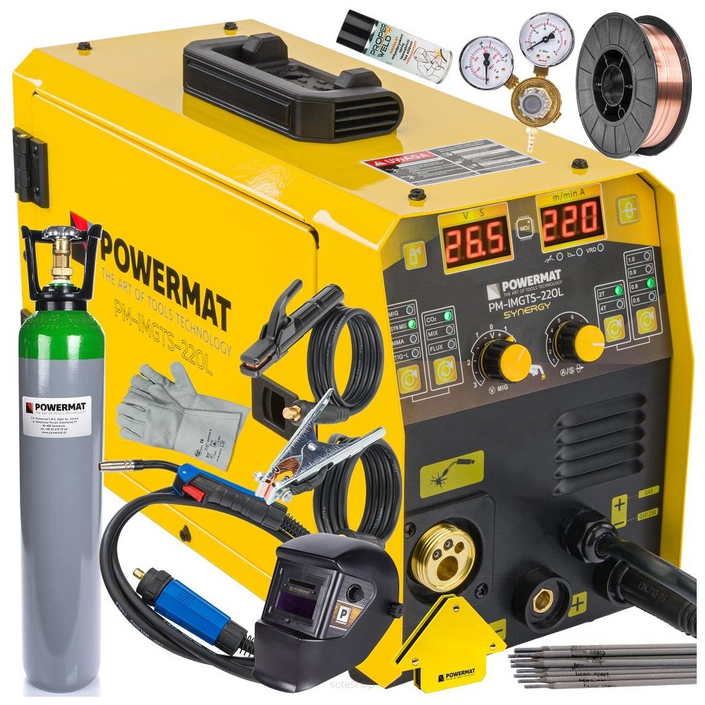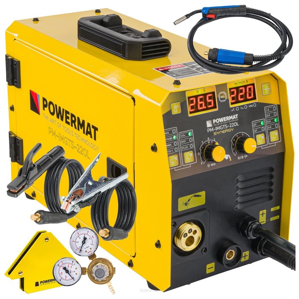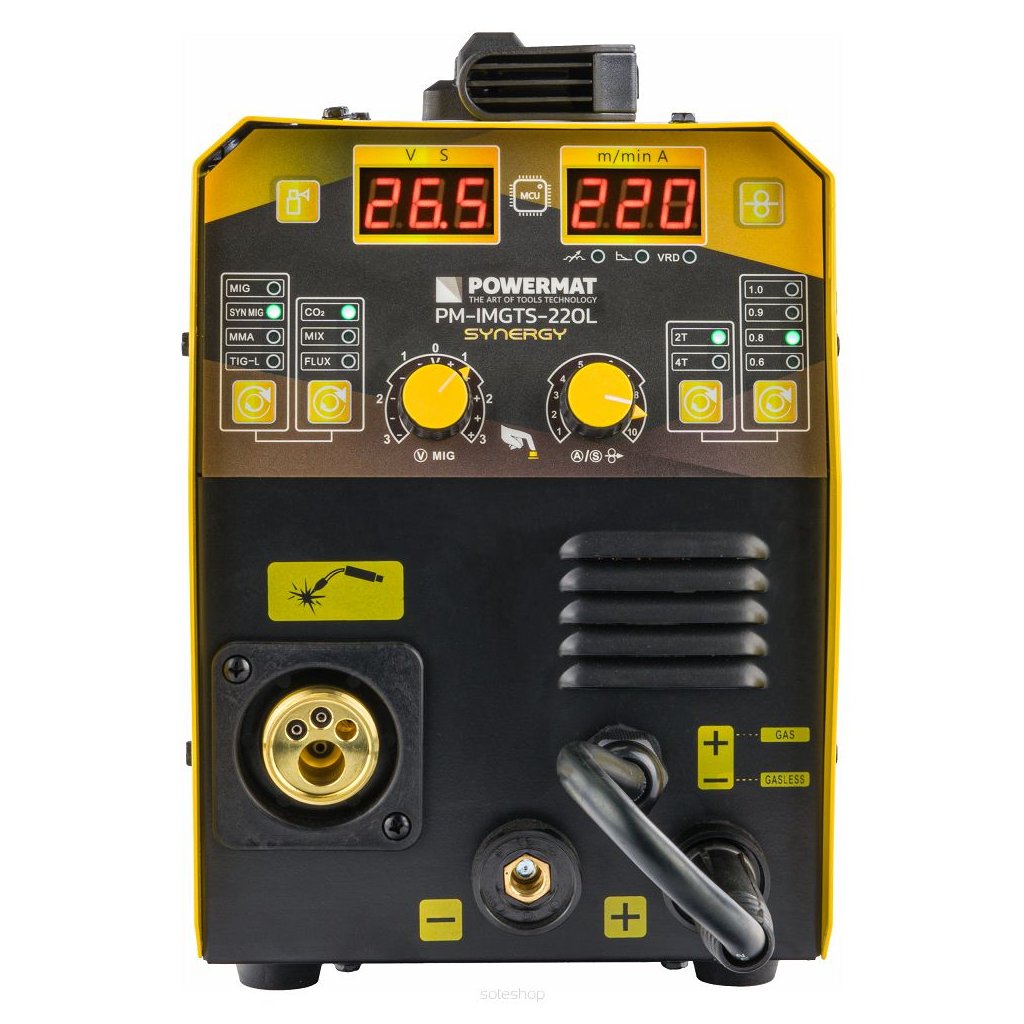 Poloautomatický svařovací stroj POWERMAT PM-IMGTS-220L má velmi široké využití. Umožňuje efektivní svařování různých typů materiálových skupin v širokém rozsahu tlouštěk materiálu. Použité tranzistory IGBT mají příznivý vliv na nižší spotřebu energie, větší odolnost proti rušení a poklesům napětí a dobré charakteristiky oblouku.