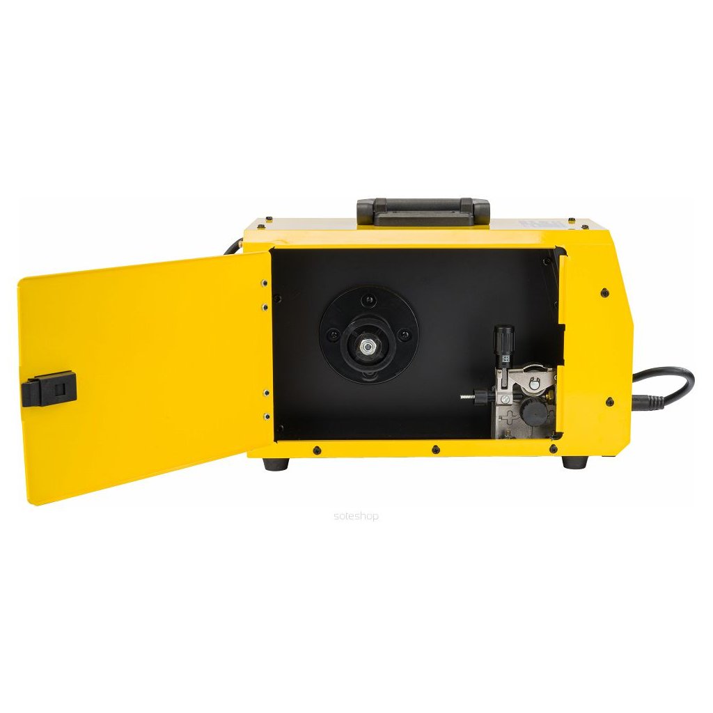 - 2kladkový podavač umožňuje přesné zasunutí svařovacího drátu bez jeho prokluzu.