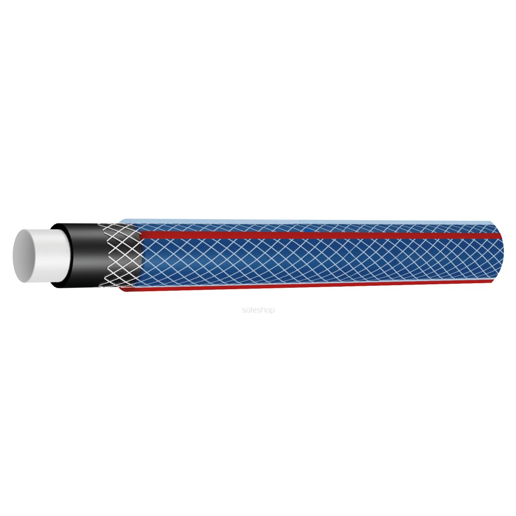 Hadice je vyrobena z velmi kvalitního vnějšího PVC anti-UV materiálu, křížového opletení ze syntetických vláken a vnější pružné PVC vrstvy.