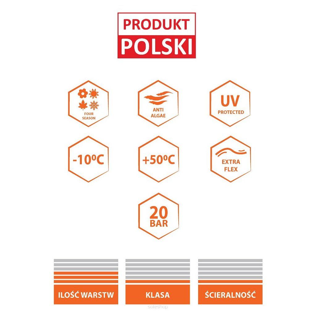 - 3-vrstvý materiál (černá duše, křížový oplet z kvalitní polyesterové příze, průhledný plášť)