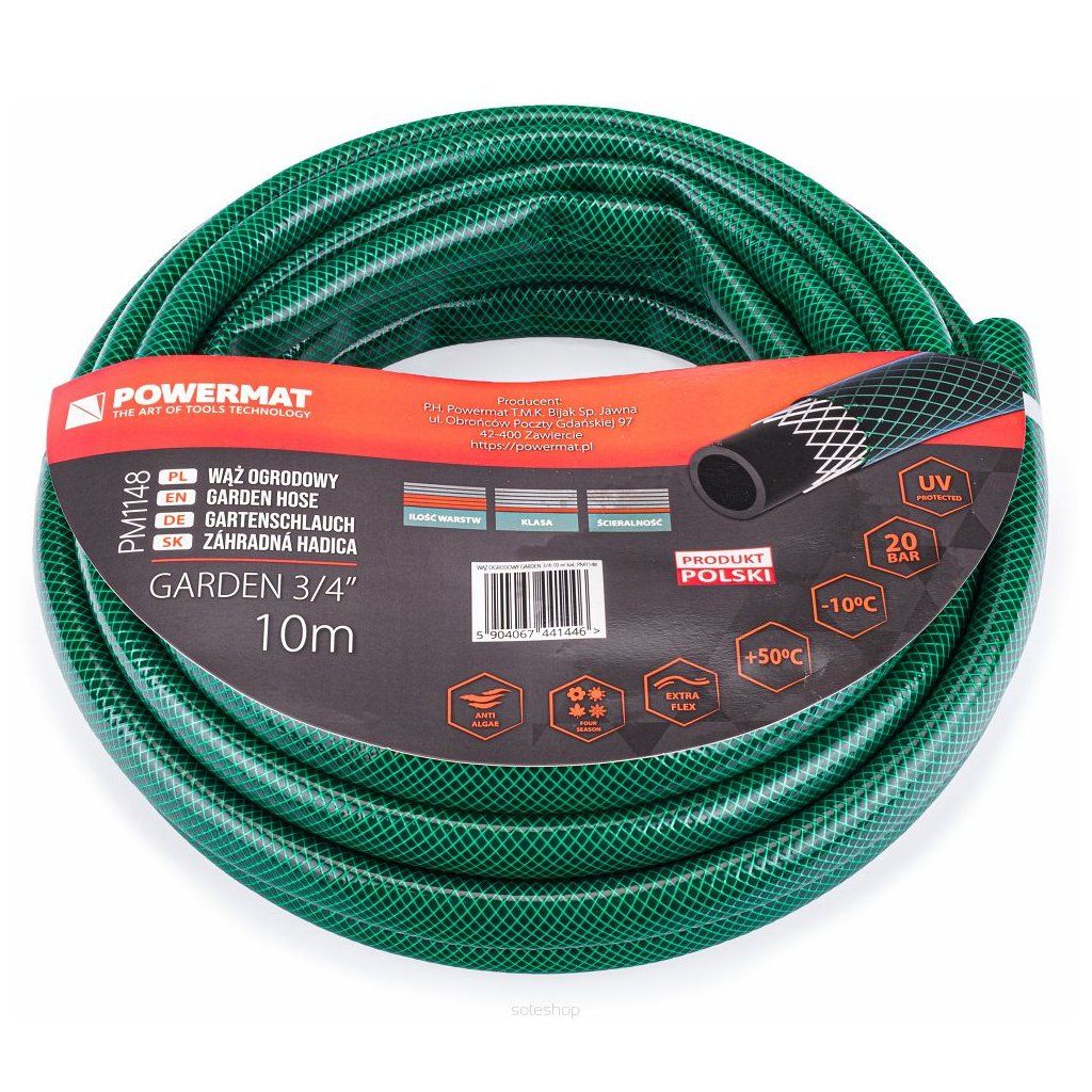 Vysoce kvalitní zahradní hadice POWERMAT se vyznačuje velmi dobrým materiálem odolným vůči slunečnímu záření a nízkým a vysokým teplotám.