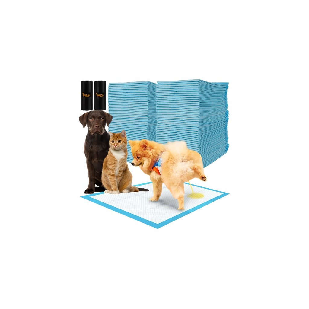 Jednorázové hygienické podložky Purlov 21599 o rozměru 60 × 40 cm jsou ideální pro výcvik štěňat, péči o nemocná zvířata nebo na cesty. Díky vysoké savosti a vodotěsné konstrukci chrání podlahy a okolí před vlhkostí. Součástí balení je navíc 30 praktických sáčků na exkrementy, které vám usnadní každodenní péči o vašeho mazlíčka.