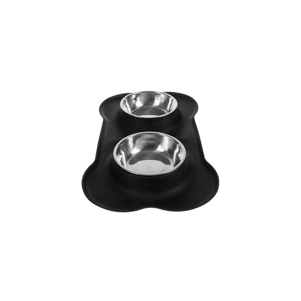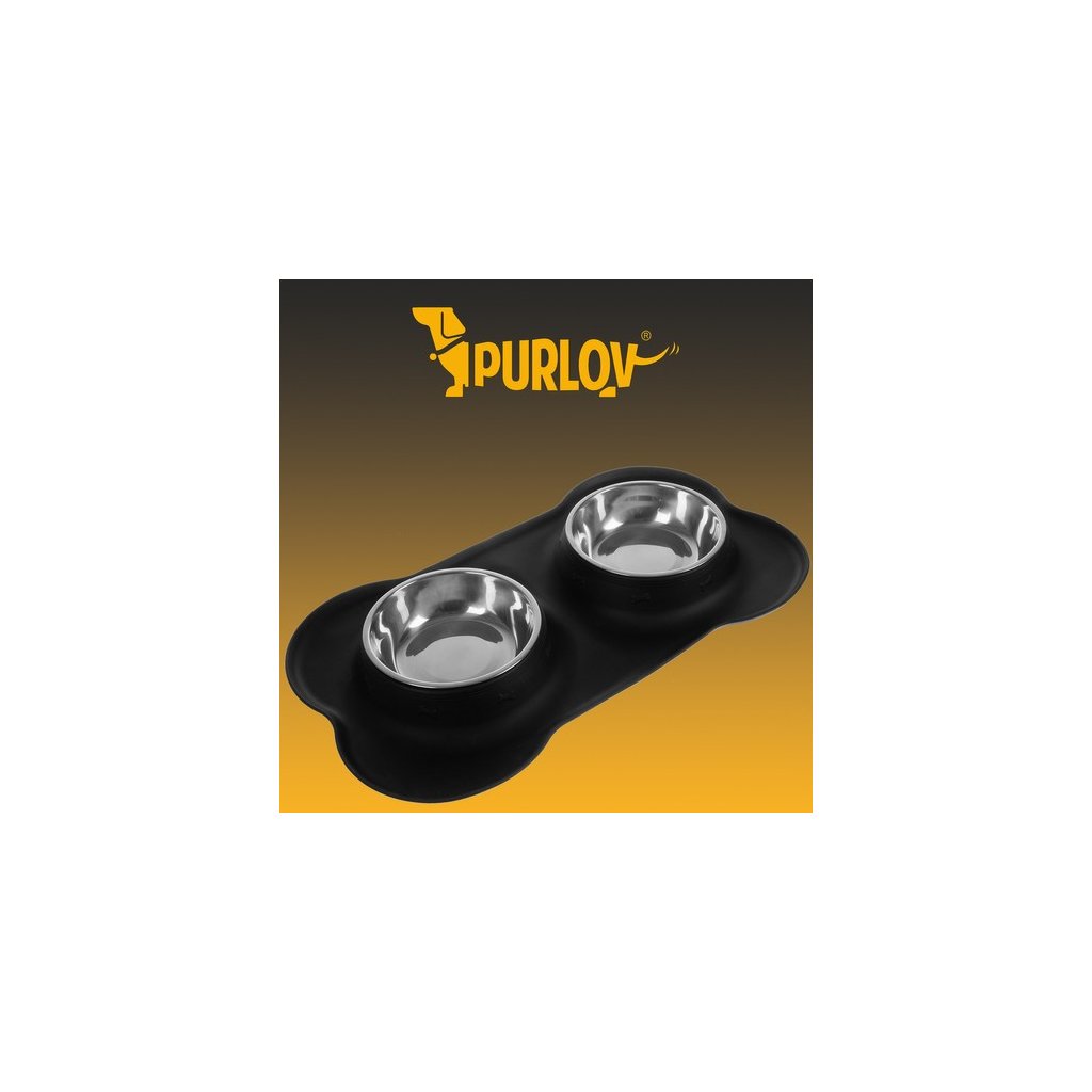 Purlov 21632 je praktická sada dvou nerezových misek s protiskluzovým silikonovým podstavcem. Díky dvojitému designu lze pohodlně oddělit vodu a krmivo. Silikonová základna zajišťuje stabilitu během krmení a chrání podlahu před nečistotami. Misky jsou vyjímatelné a snadno se čistí – ideální řešení pro každodenní použití u psů i koček.