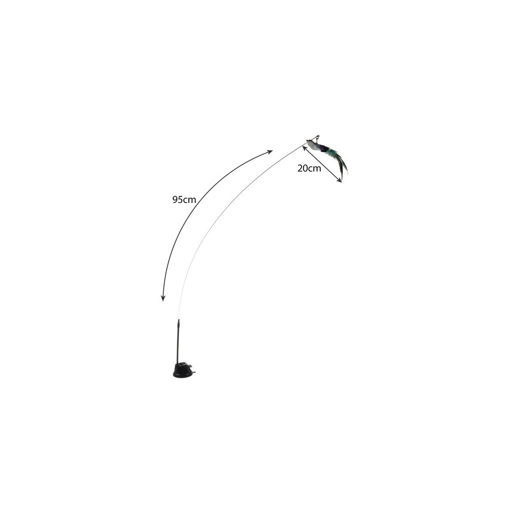 Interaktivní hračka pro kočky Purlov 22099 je zábavný a stimulující doplněk, který podpoří přirozený lovecký instinkt vaší kočky. Dlouhý pružný rybářský prut s barevným ptáčkem na konci, zakončeným peřím a zvonečkem, přitahuje pozornost a vybízí ke hře. Silná přísavka umožňuje připevnění na hladké povrchy, takže si kočka může hrát sama nebo společně s vámi. Skvělé pro fyzickou aktivitu i duševní stimulaci vašeho mazlíčka.