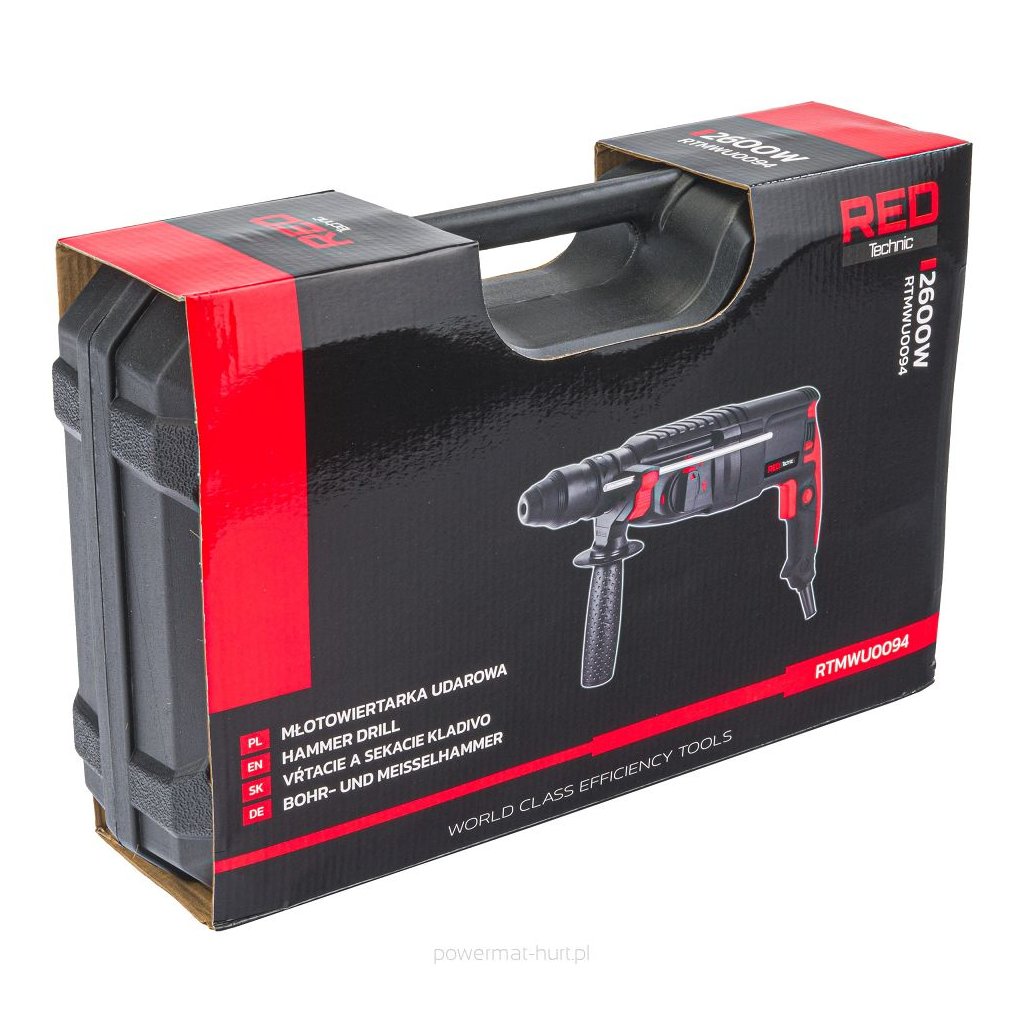 - Vrtačka RED TECHNIC RTMWU0094 o výkonu 2600 W s upínacím systémem vrtáků SDS Plus.