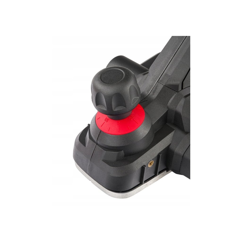 - Nastavitelná hloubka hoblování: Hloubka hoblování je snadno nastavitelná od 0-3 mm pomocí otočného knoflíku umístěného pod vodicí rukojetí.