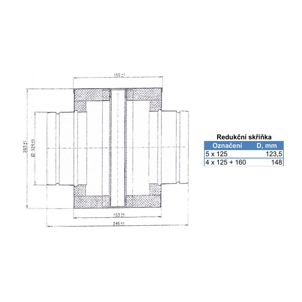 Rozbočovací skříňka 160/4x125 mm (krychle), pozink