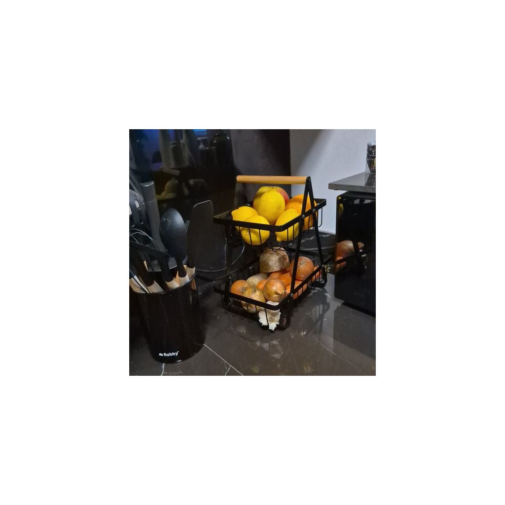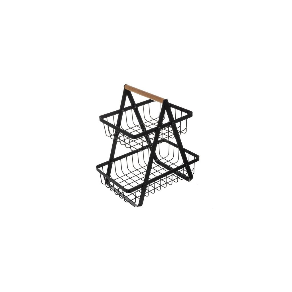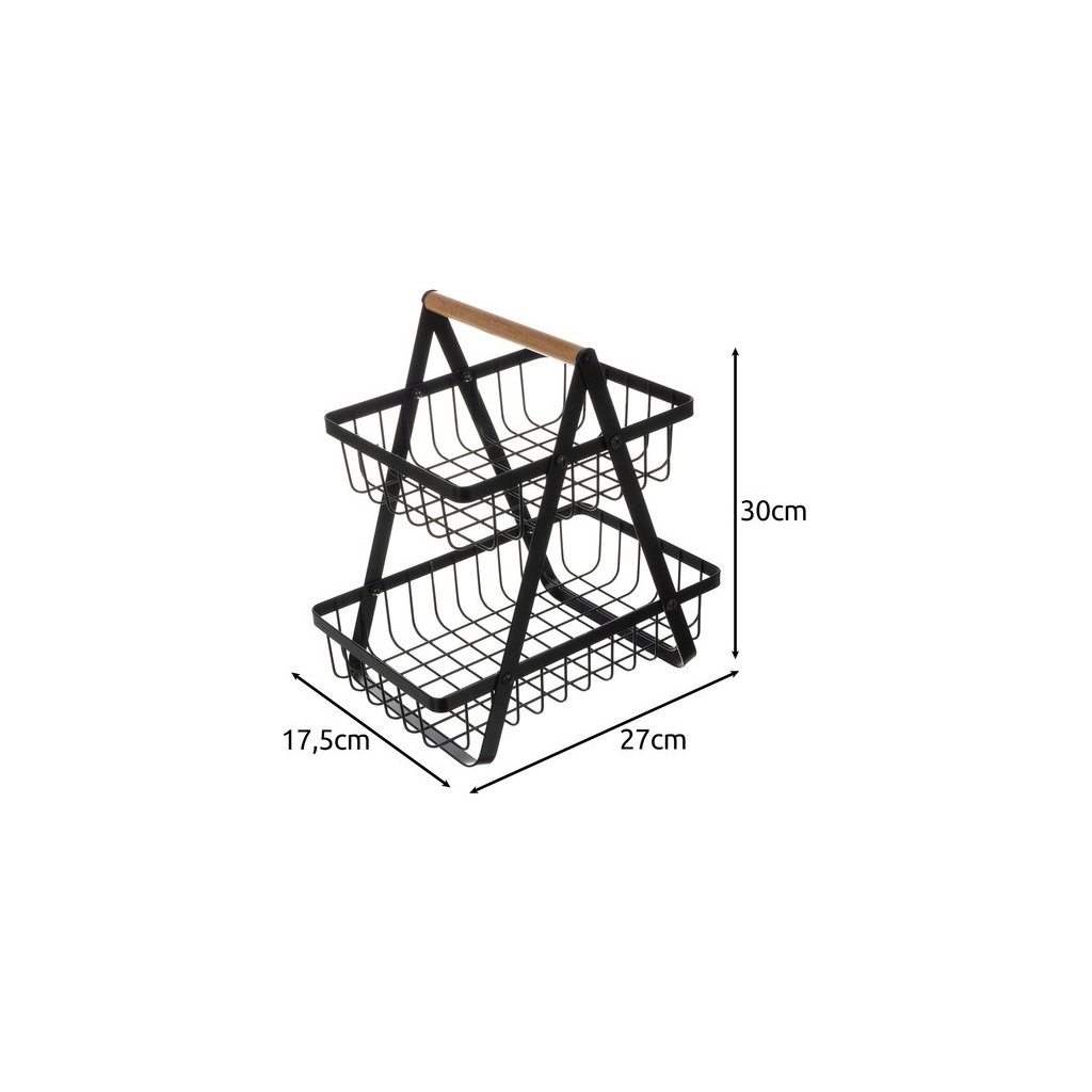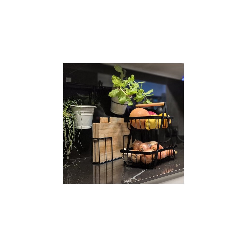 Stylový dvoupatrový koš v matné černé barvě je ideálním řešením pro skladování ovoce a zeleniny v kuchyni. Díky svému praktickému designu šetří místo, nabízí vysokou kapacitu a zároveň dodá kuchyni moderní loftový vzhled. Dřevěná rukojeť zajišťuje pohodlné přenášení, zatímco pevná kovová konstrukce zaručuje stabilitu a odolnost při každodenním používání.