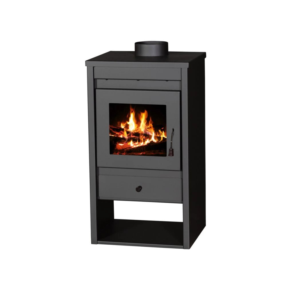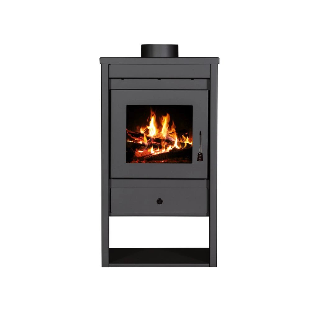 - Keramické sklo: Dvířka s keramickým sklem odolným teplotám až do 850 °C poskytují bezpečný a atraktivní pohled na plameny.