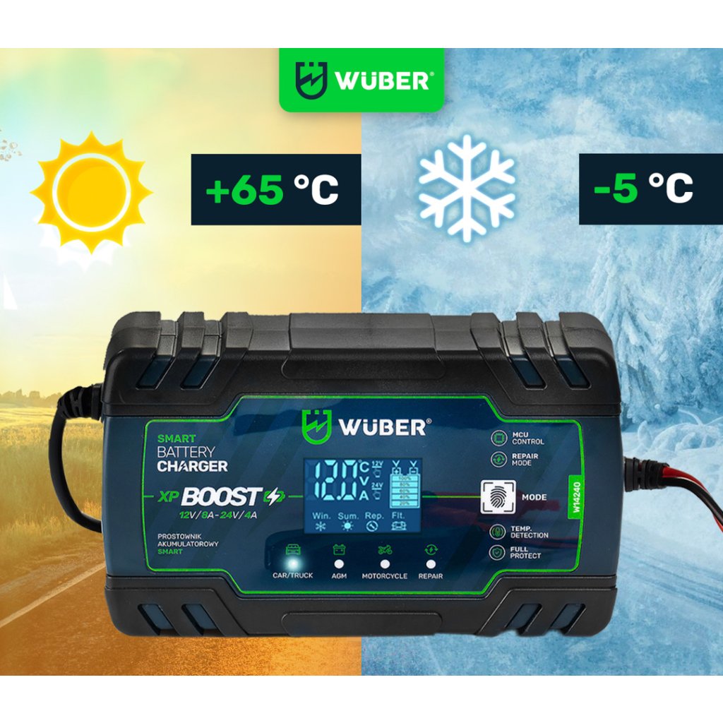 WUBER Mikroprocesorová nabíječka baterií 12-24V W14240